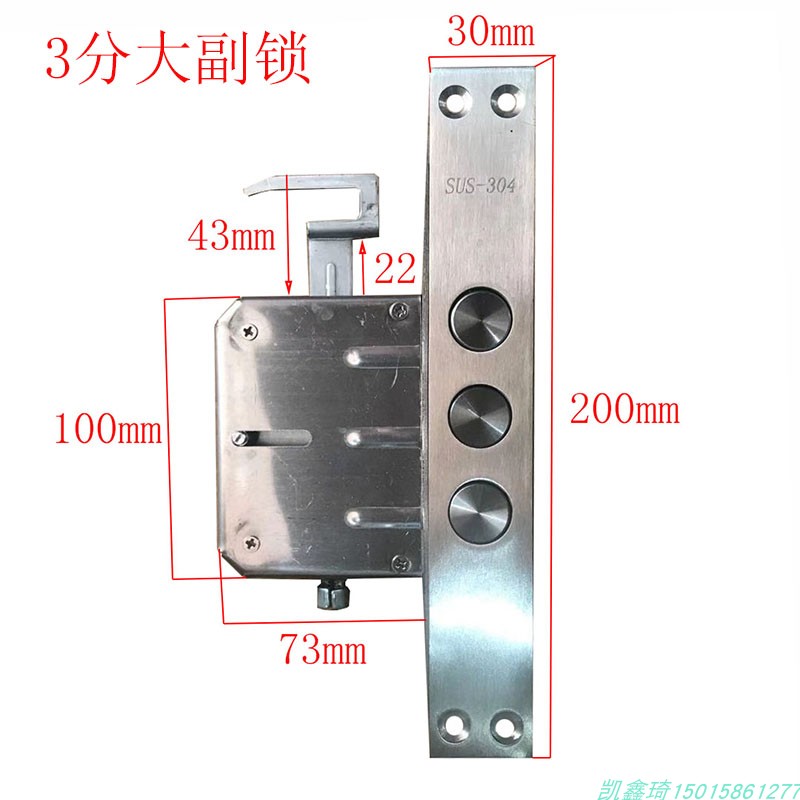 Stainless steel anti-theft door thickened 3 points big Phnom Penh secondary lock spring invisible door automatic lock body 2 4 square side lock points