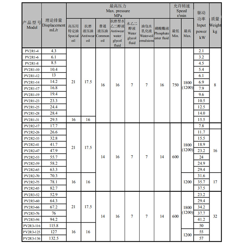 PV2R1-4F (large shaft 19 05) PV2R1-6F (large shaft 19 05) PV2R1-8F (large shaft 19 05) PV2R1-10F