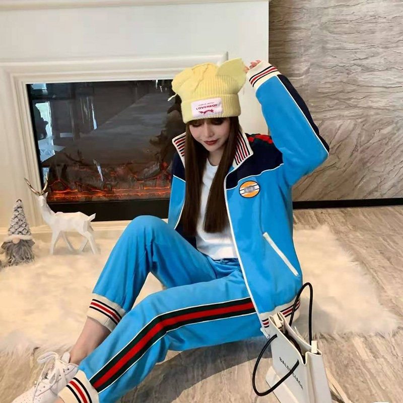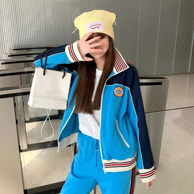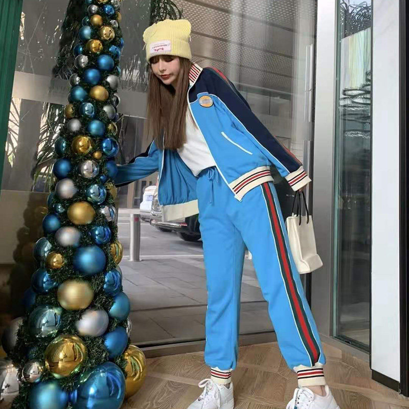 Fashion sports suit women's 2021 spring new Korean version webbing plain zipper jacket thread drawstring foot smoke pipe pants