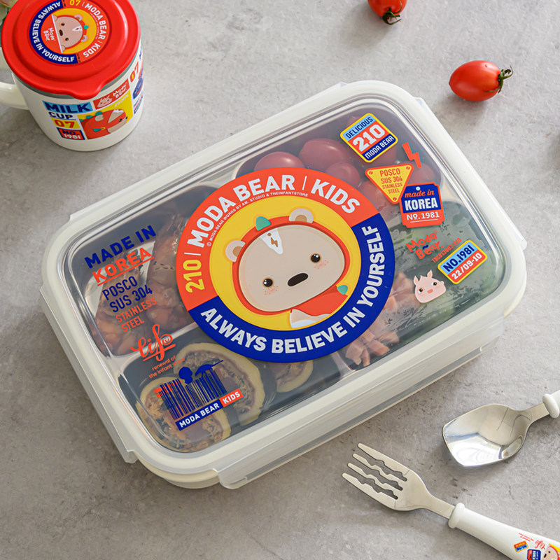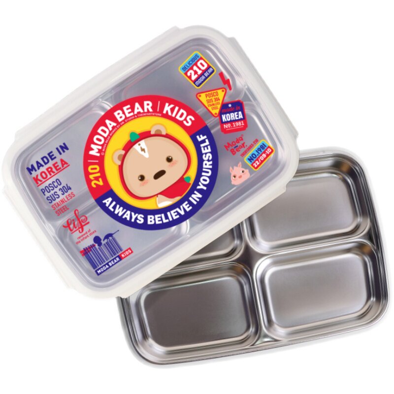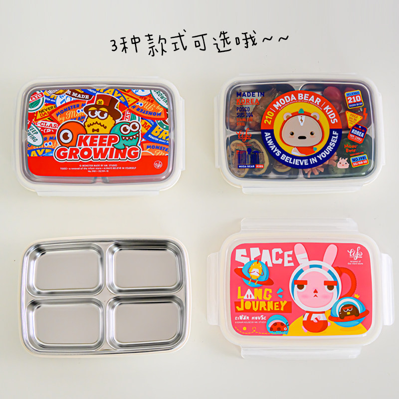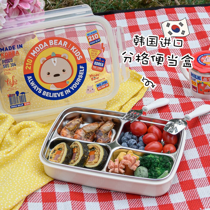 South Korea TISOU imported 304 stainless steel lunch box divided plate with lid children's lunch box primary school lunch box