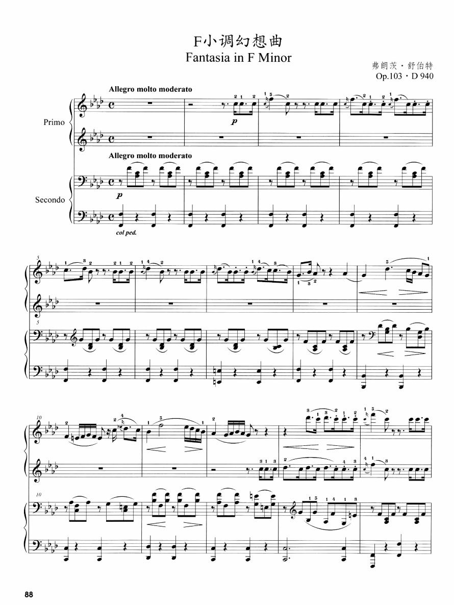 Schubert Fantasia in F minor D940 Four-hand piano score with fingering - 37 pages