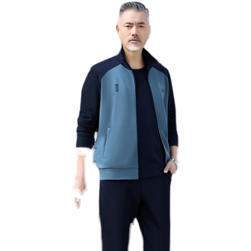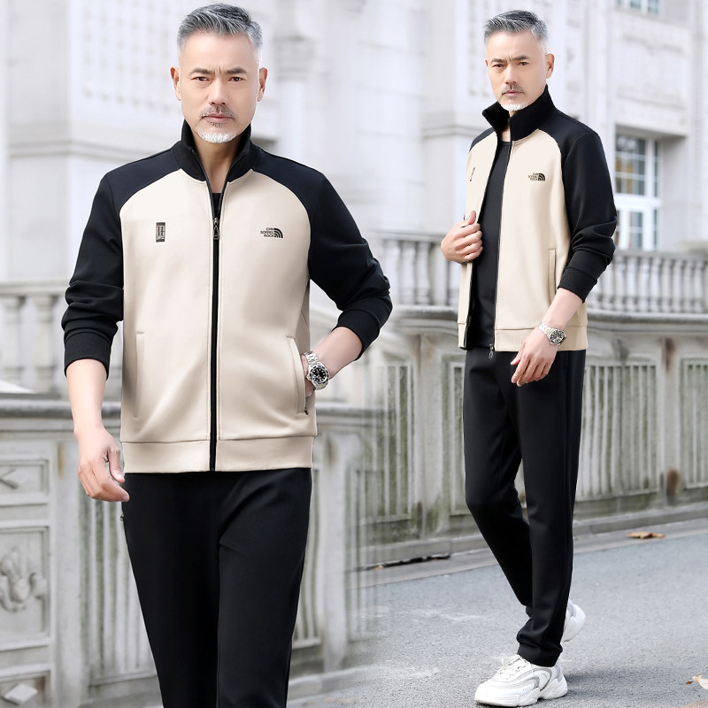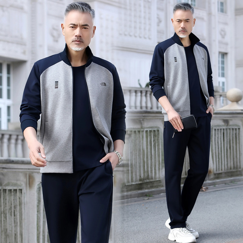 Spring and autumn casual sports suit middle-aged and elderly men's three-piece cotton long-sleeved loose sportswear dad coat
