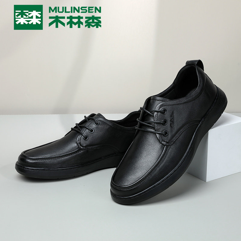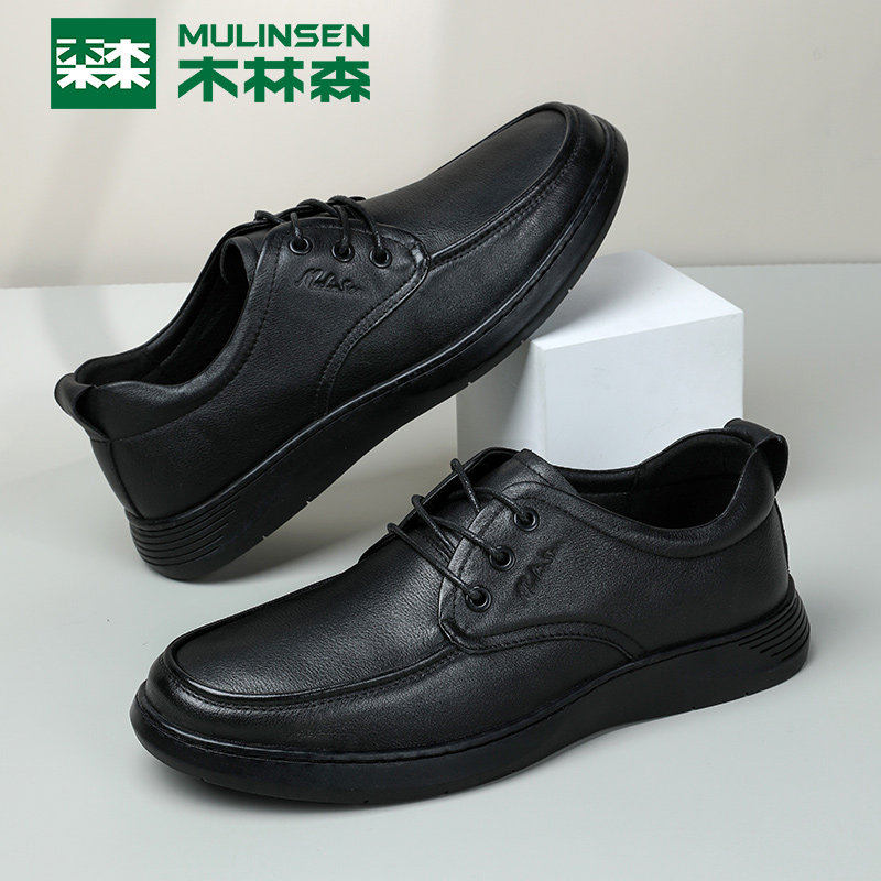 Wood Linson Men Shoes Business Casual Leather Shoes Spring Summer New Men's Head Layer Cow Leather Genuine Leather Breathable 100 Lap Dad Shoes