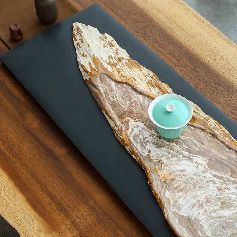 Natural wood fossil tea tray Household tea room Wu Jinshi tea sea drainage simple light luxury large tree jade tea table