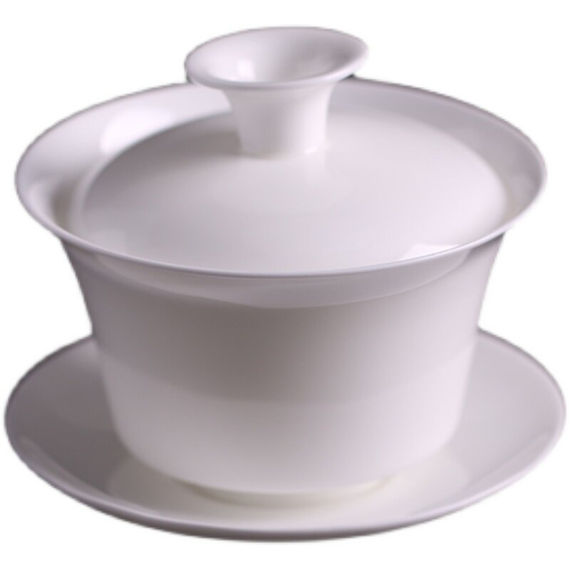 Bone china cover bowl light-transmitting thin tire pure white porcelain kung fu tea set underglaze color test tea bowl ceramic single tea prepared three talents bowl