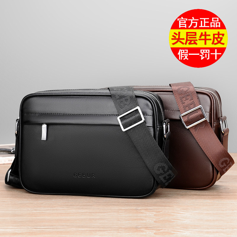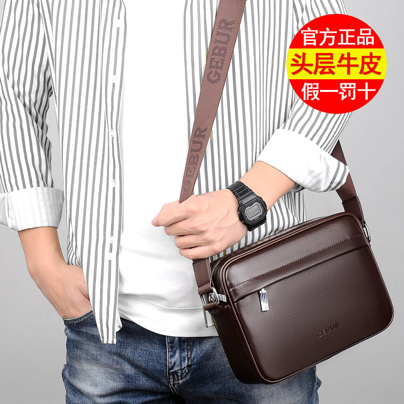 Head Layer Bull Leather Men's Bag Leather Men's Bag Single Shoulder Bag Cross Section Casual Twill Bag 2022 New Male SHOULDER BAG