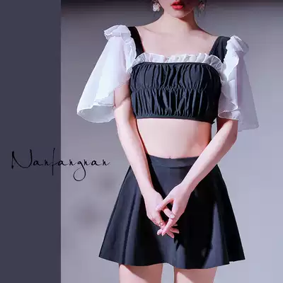 Korean version 2021 new women's two-piece swimsuit women's skirt style thin boxer conservative hot spring short sleeve swimsuit