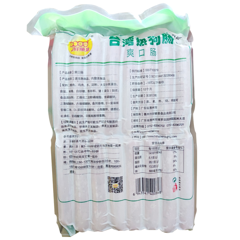 Haoshunjing Original Refreshing Sausage Taiwanese Style Hot Dog Sausage Grilled Sausage Ham Sausage Frozen Semi-finished Products Commercial 10 Packs