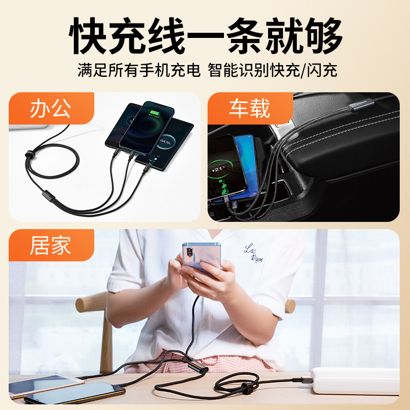 Double th charging line one drag three typec data line Three-in-one PD20W fast-charging mobile phone in-vehicle multifunction charging wire quick-filling three-in-one suitable for Apple Huawei Xiaomi Android mobile phone