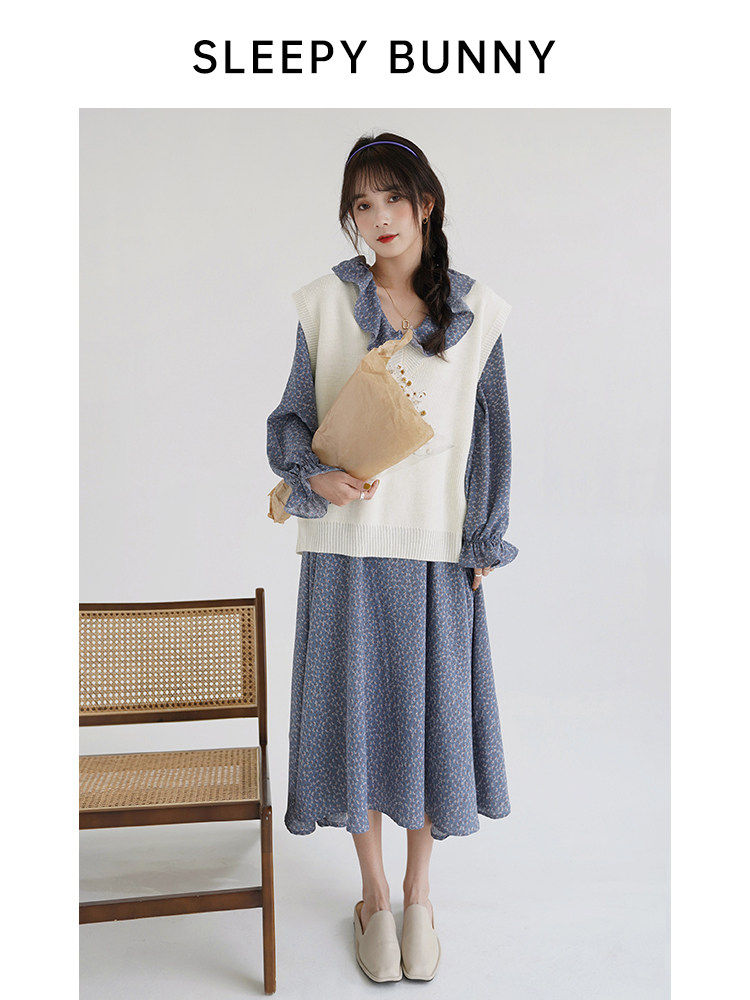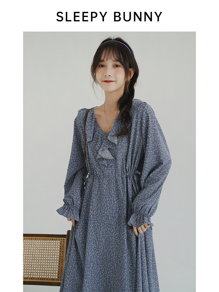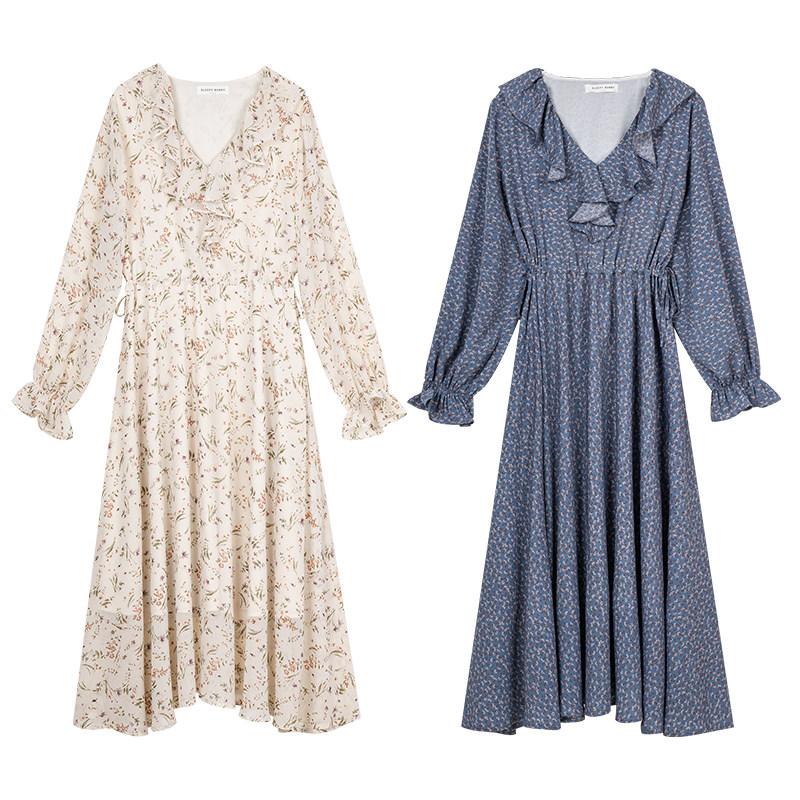 Sleeping Rabbit "Living in Spring" Gentle Flower Chiffon Dress 2021 Spring Women's Long Dress Mori