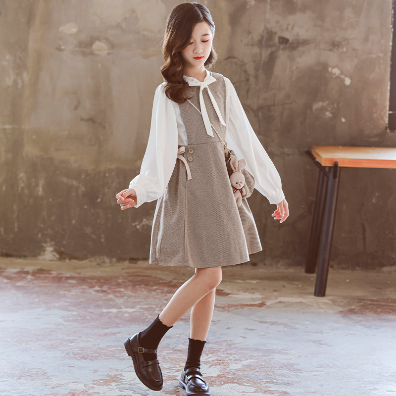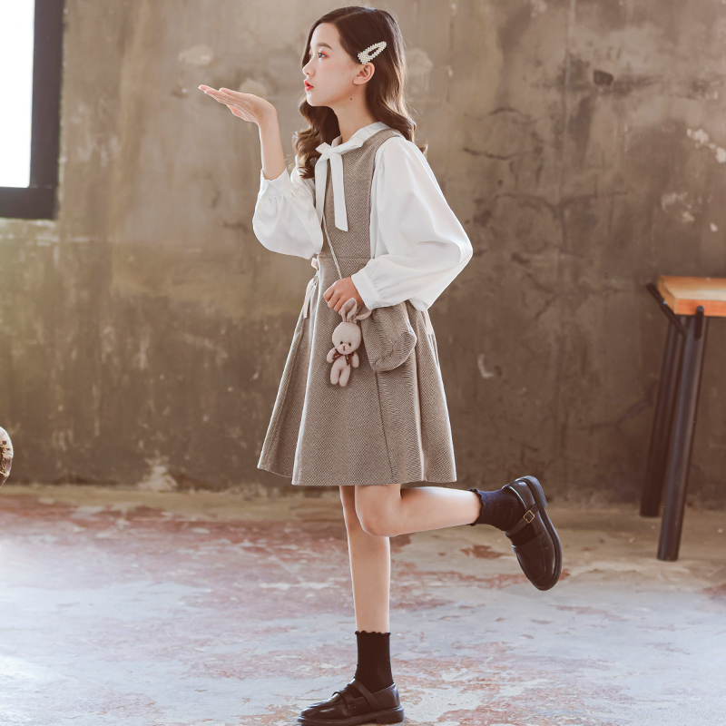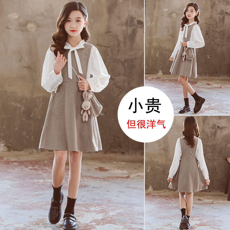 Girls Spring Clothes 2023 New Girls Fashion Gas Dress in Big Children's College Wind Two Pieces of Spring and Autumn