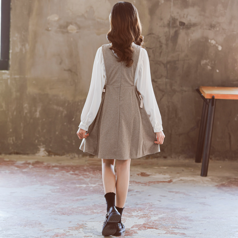 White shirt Gray vest skirt White shirt Gray vest skirt Almond cortex hoop White shirt Gray vest dress Beret Hat 3 sets (Tip