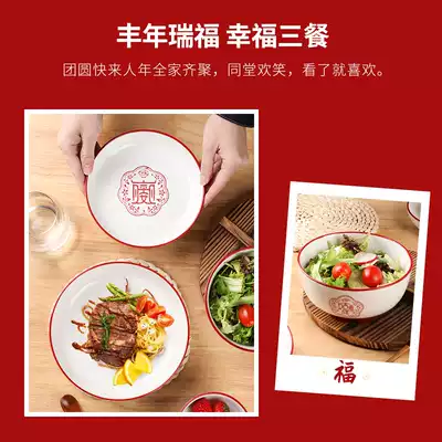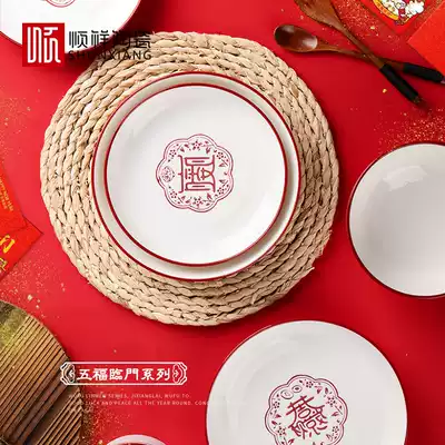 Shunxiang Ceramics Wufu Linmen Chinese family festive personality creative underglaze dish dishes tableware housewarming gifts