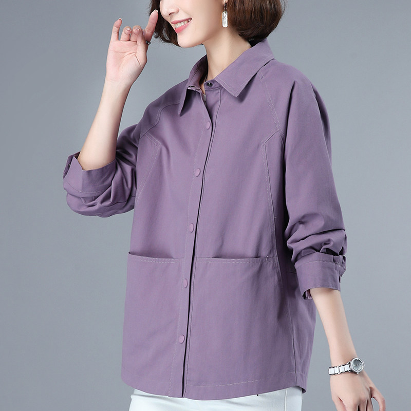 Thin women's shirt jacket vintage spring and autumn middle-aged mother's new shirt women's spring top polo shirt