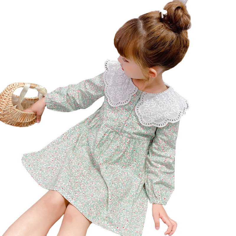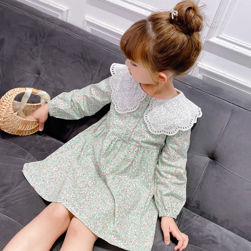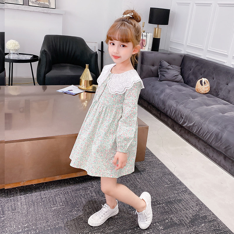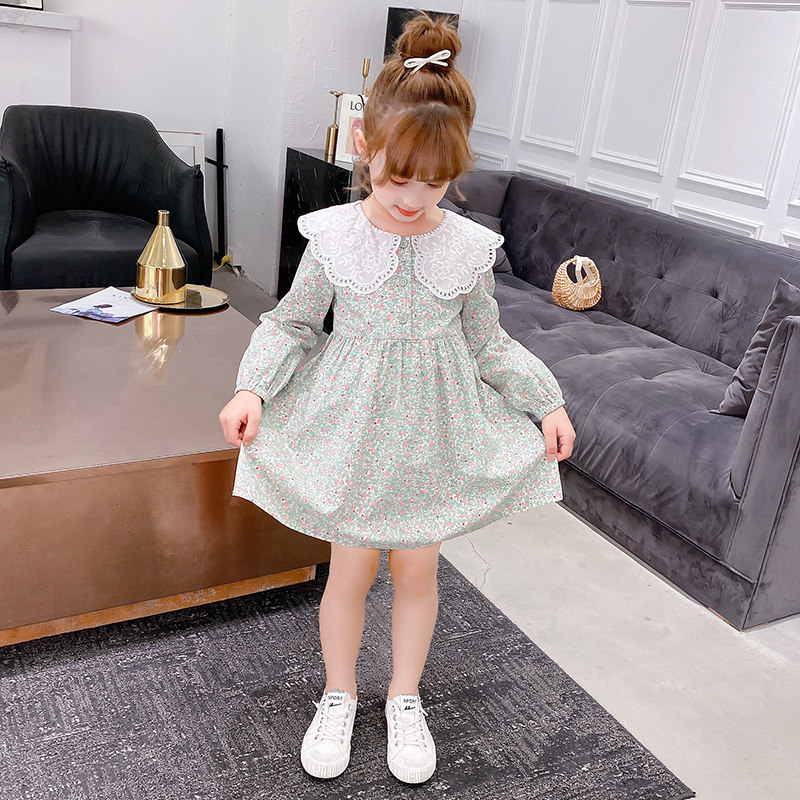 Girls cotton dress autumn 2021 new style in the female big child spring and autumn children's doll collar floral skirt