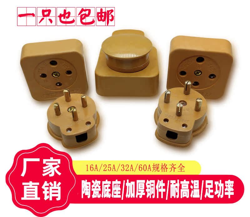 High temperature resistant three-phase four-wire male and female fiberglass plug Zhenhua brand 16A25A32A60A hole 380V industrial socket