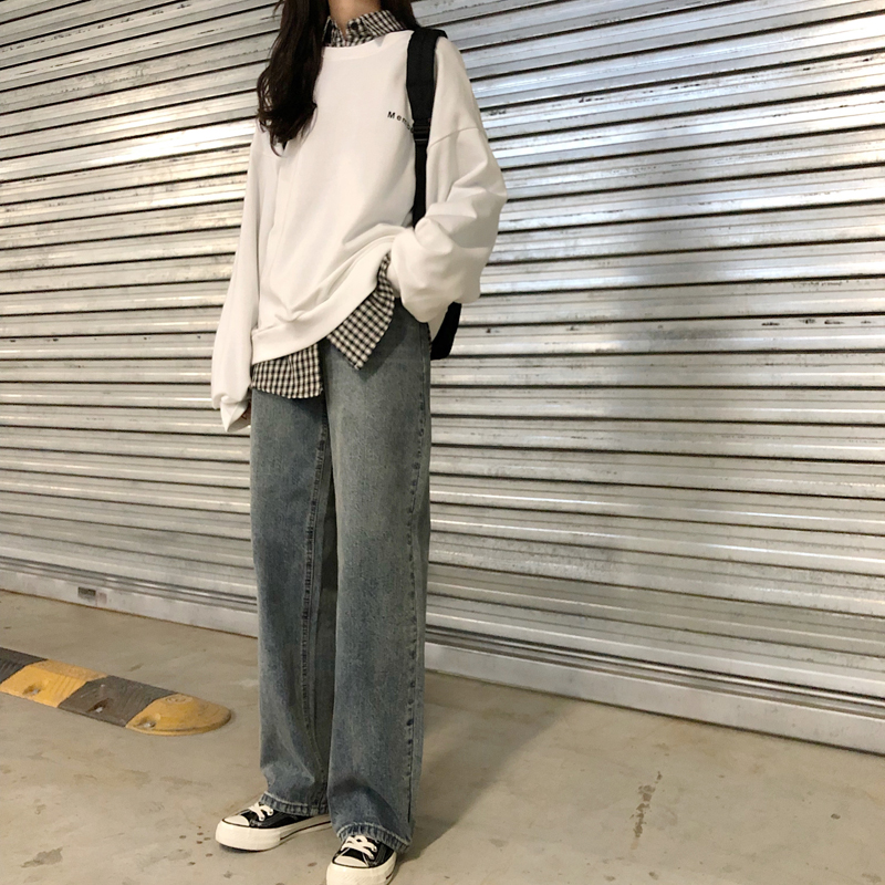 Retro jeans women's loose straight 2022 new autumn mopping wide-leg pants high waist thin all-match pants trend