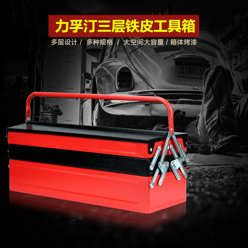 Lifting Hardware Toolbox Iron-based 3 layers Folding Industrial Class Toolbox Large Household Collection Box