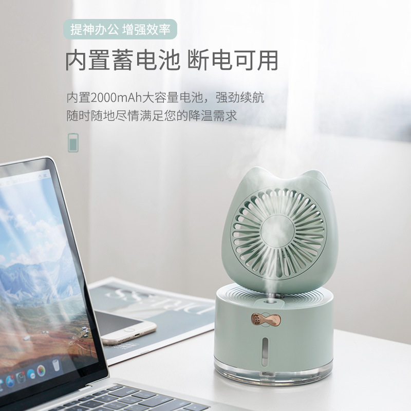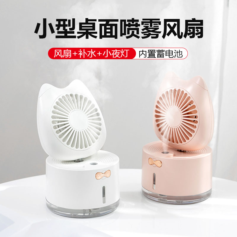 Small spray fan USB charging mute portable cooling deities large wind ice cubes refrigeration plus wet dual-use student Dormitory Office Desktop Home Small Night Light Multifunction Small Air Conditioning