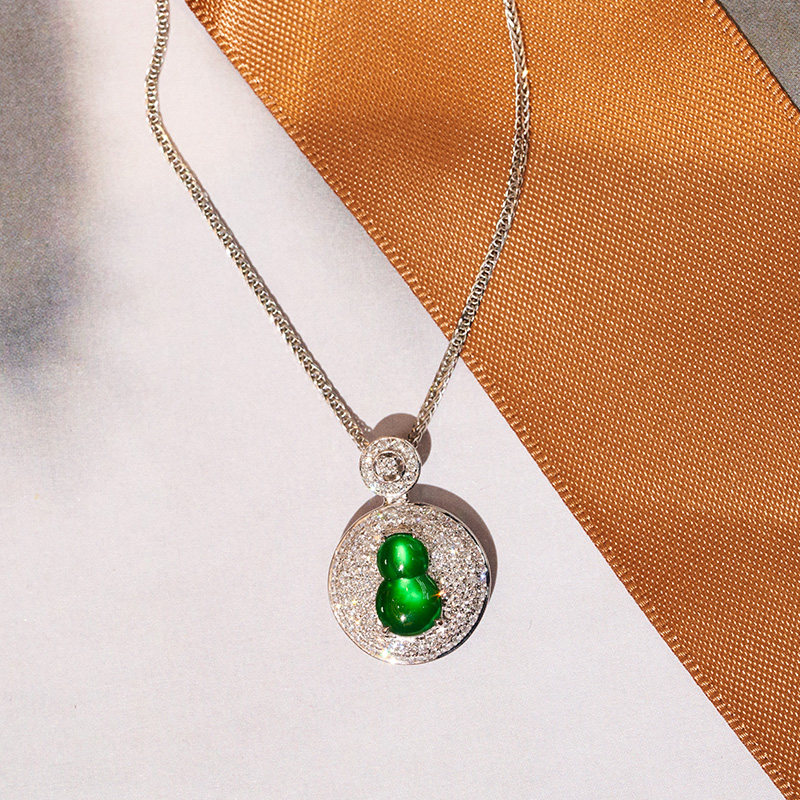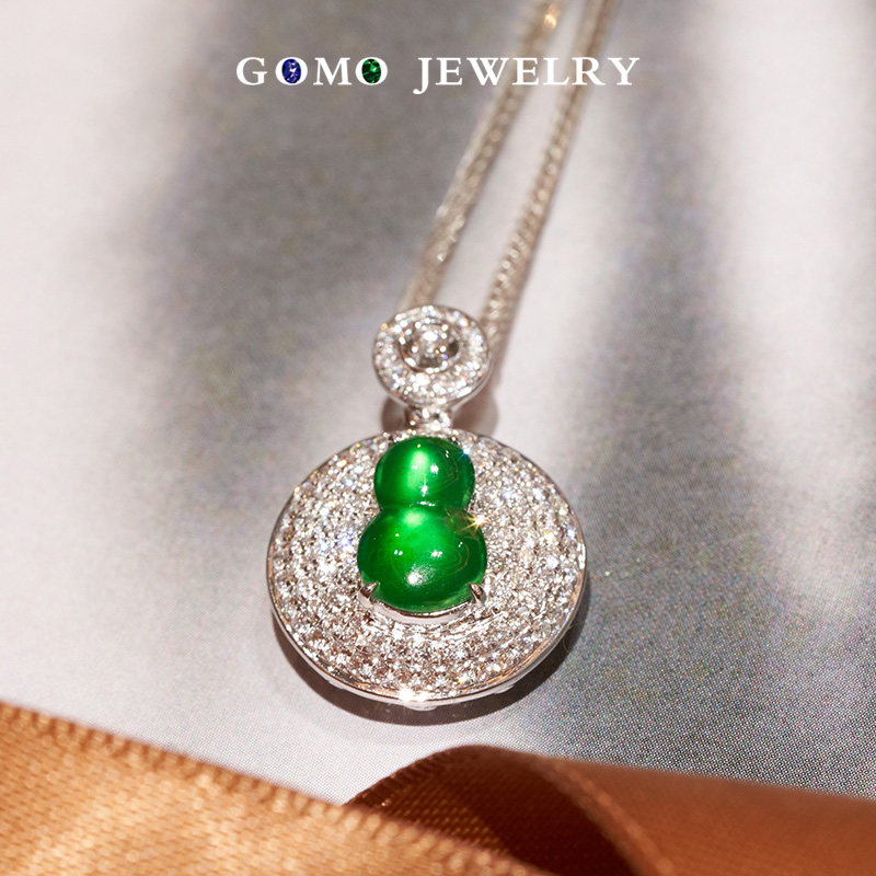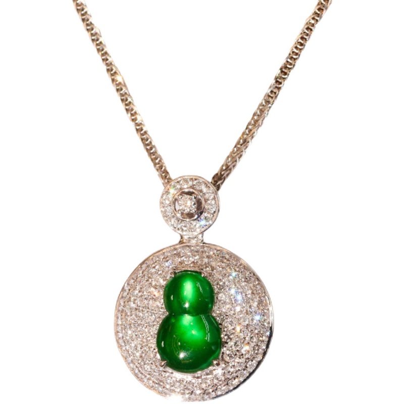 Inlaid encounter with uncourtable glass species emperors green full green light emerald A cargo plinth 18k gold diamond pendant
