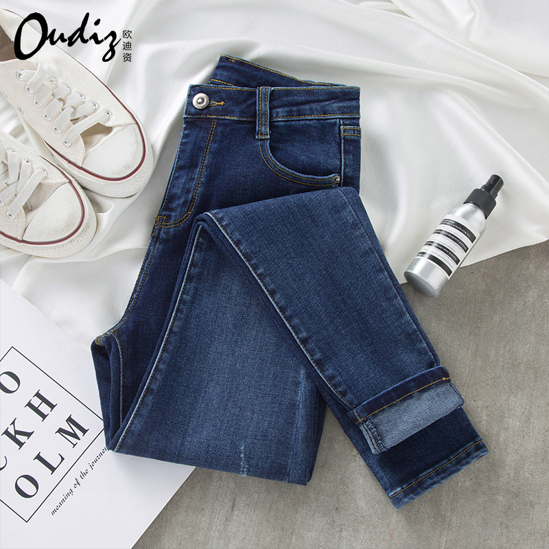 Blue high-waisted jeans women's 2021 summer thin stretch tight-fitting large size fat mm slim-fitting thin-legged trousers