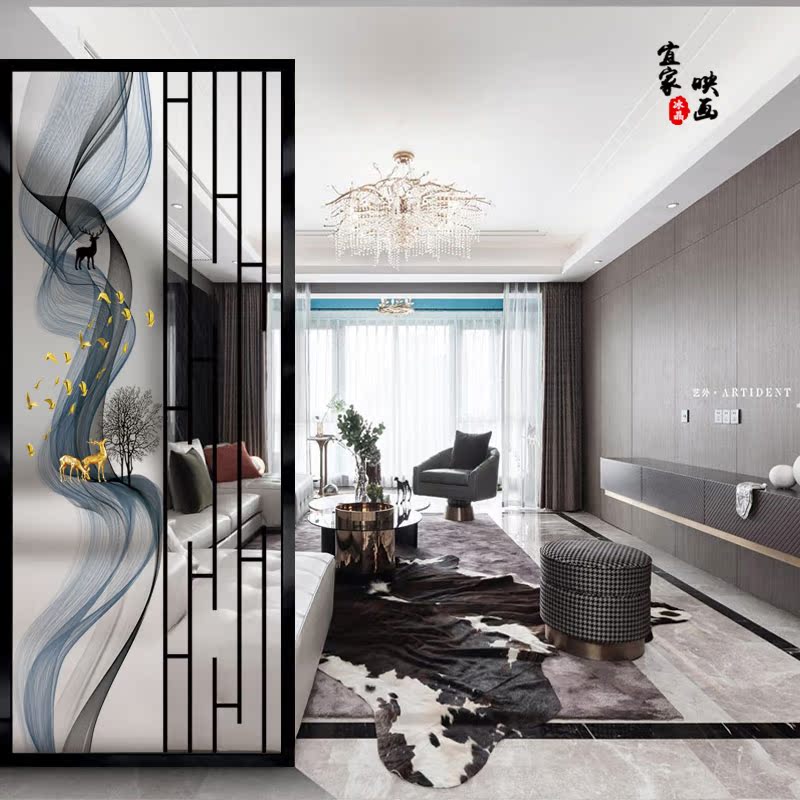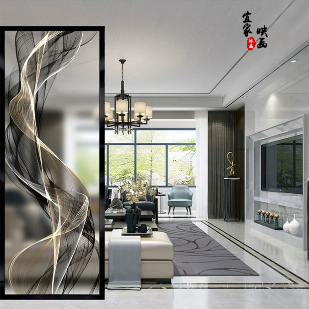 New Chinese 3D art glass screen partition double - sided frost into light luxury shoe cabinet alcohol severance tempered glass