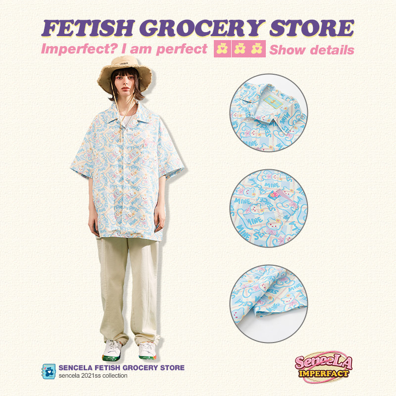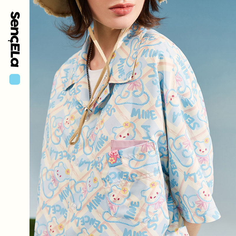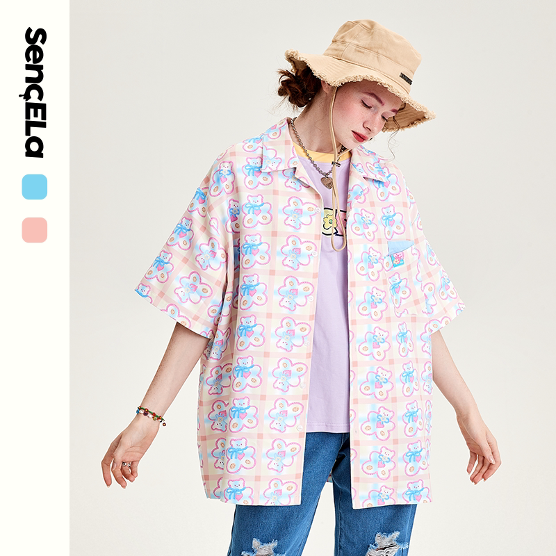 SENCE LA Yang Chaoyue Zhang Xingte with the same full print bear short-sleeved shirt oversize tide brand couple outfit