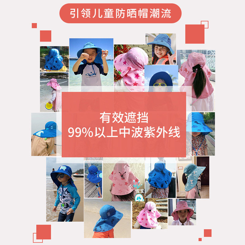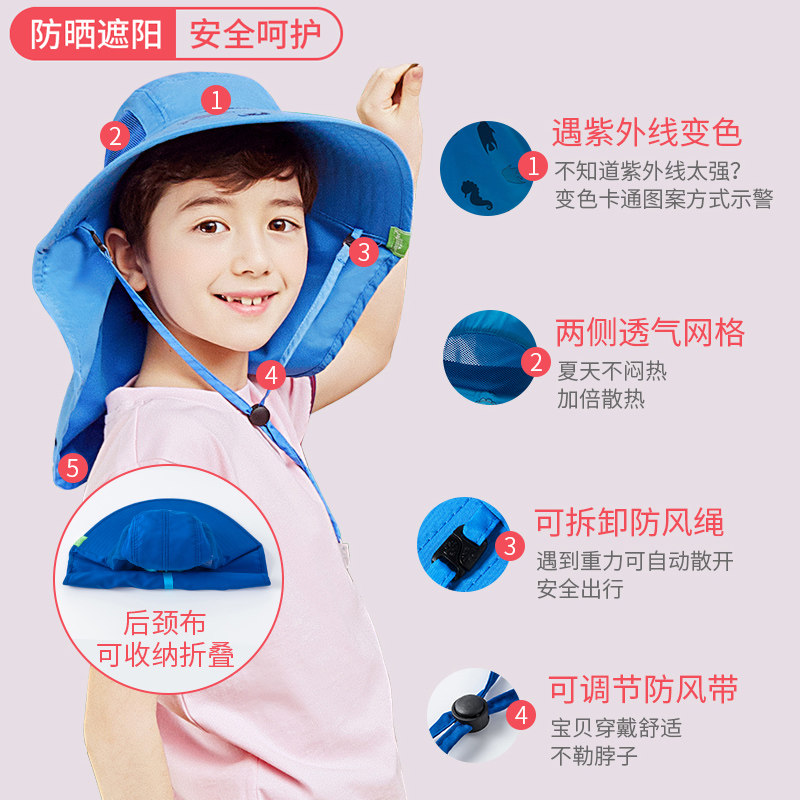KK Tree kocotree Children's Sunscreen Cap Anti-UV Visor Boys Seaside Beach Hat Fisherman Hat