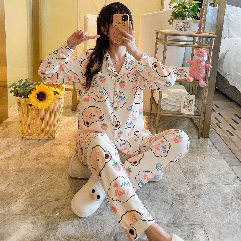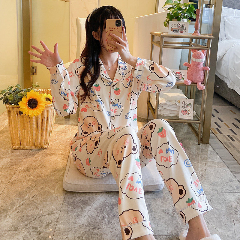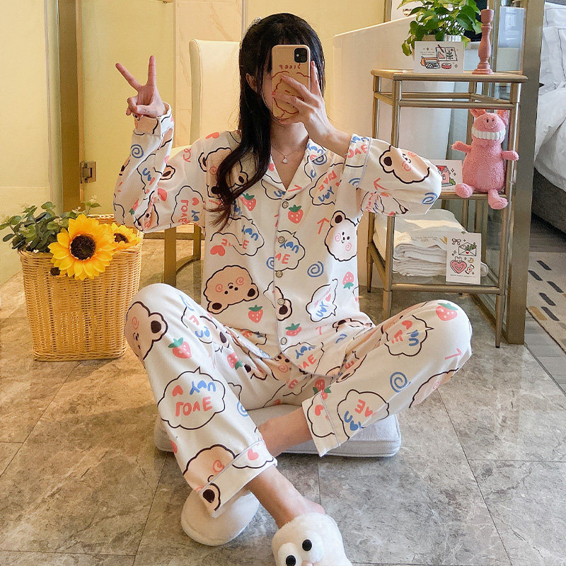 2021 New Pajamas Ladies Spring and Autumn Autumn Pure Cotton Long-sleeved Homewear Cotton Autumn and Winter Thin Suit