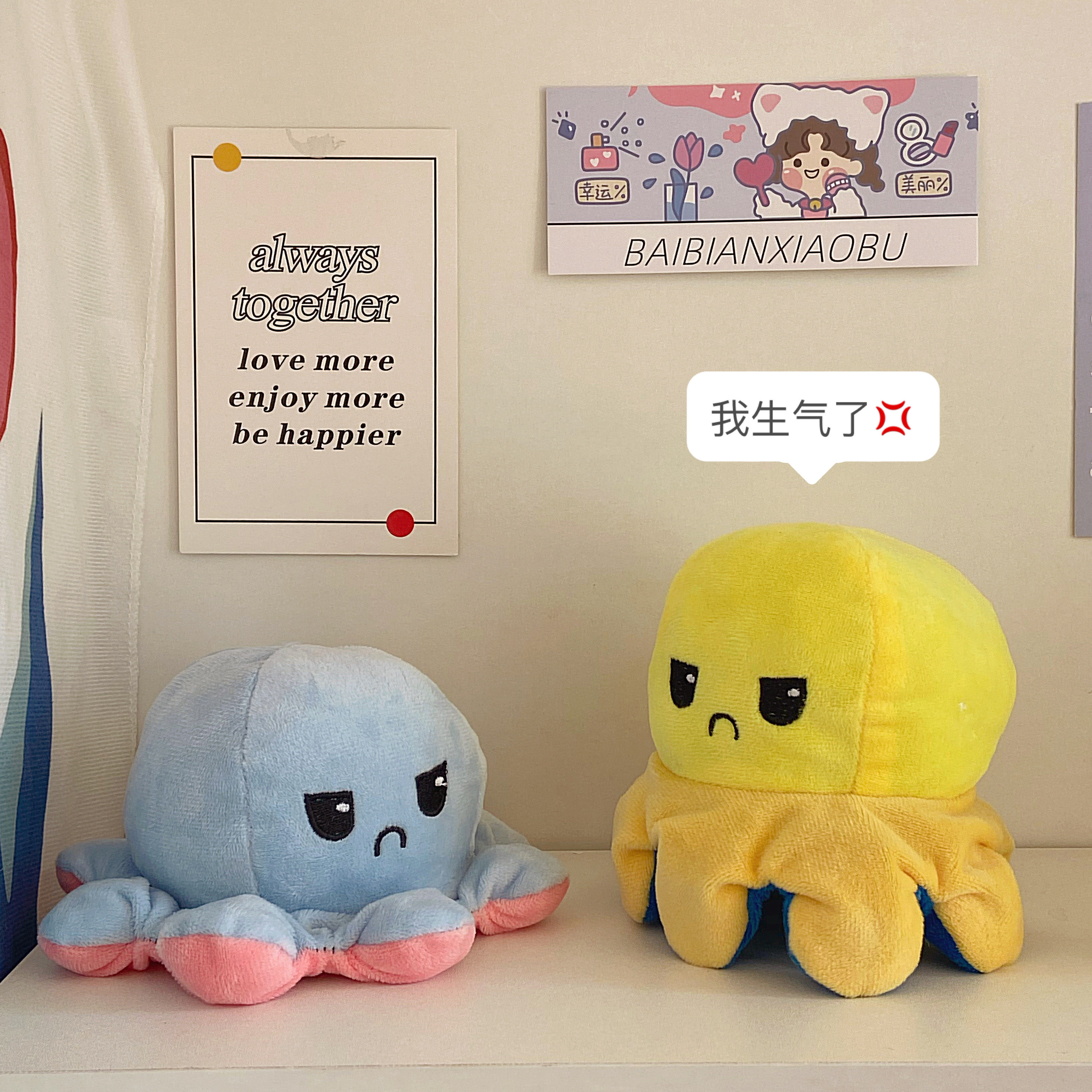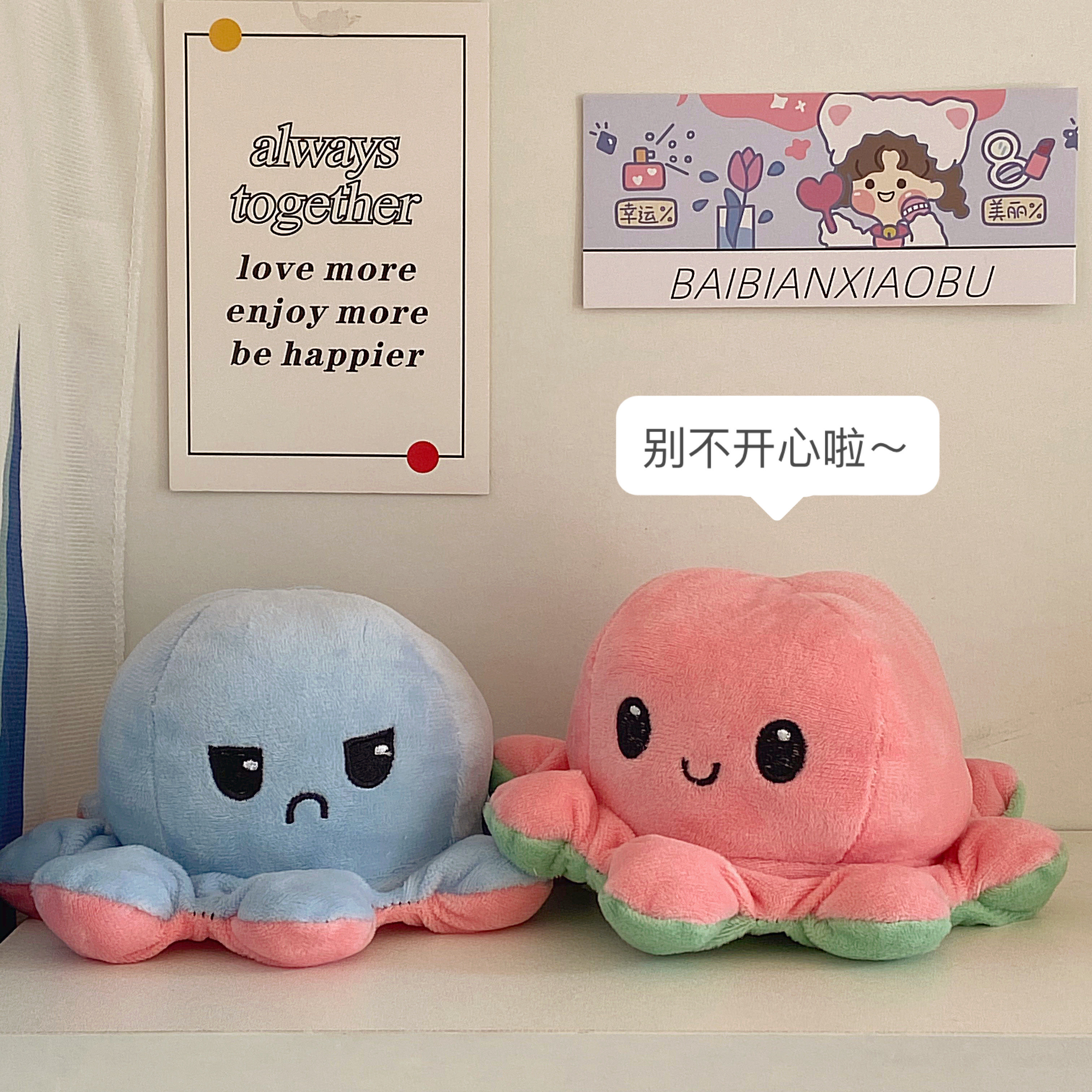 *Tomato Sensen * Cute flip face octopus doll angry double-sided expression flip octopus plush toy vibrato