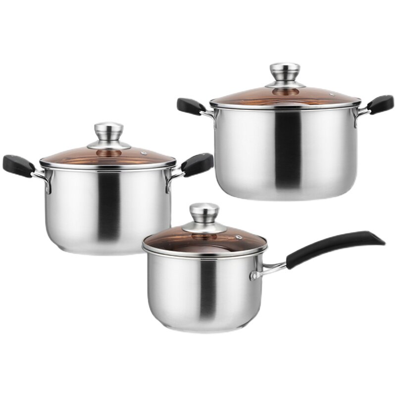 Thick stainless steel cooking three gift kits electromagnetic oven boiler household hot milk gas boiled porridge cooking porridge stew cooker