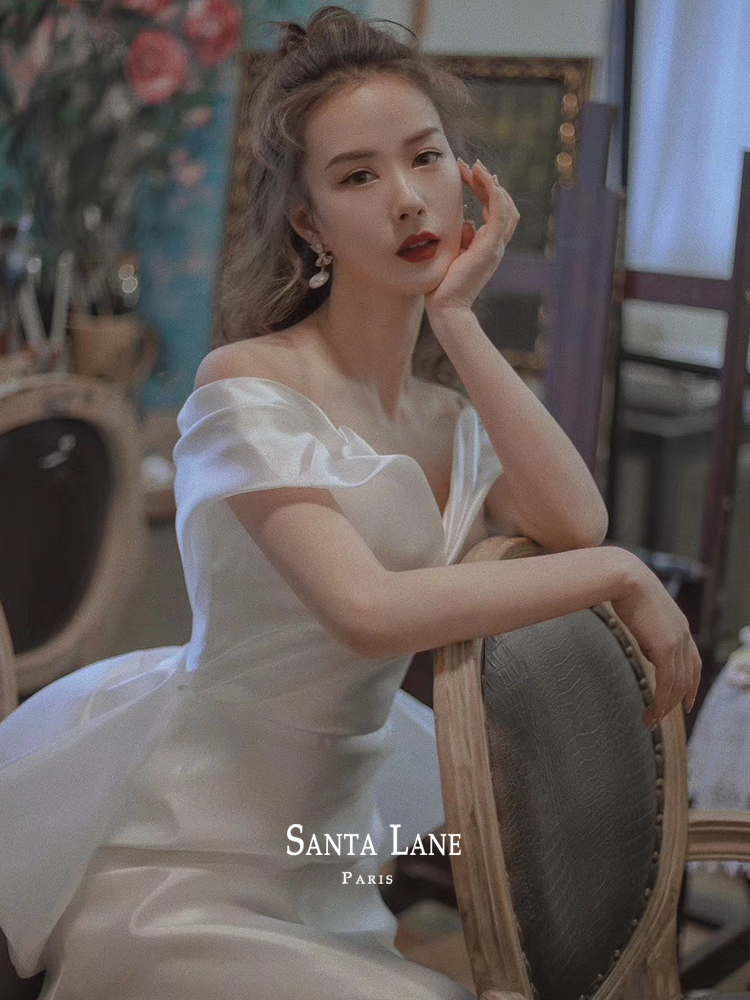 Light wedding dress 2021 new satin fishtail wedding dress retro simple atmosphere European temperament super immortal dream main yarn