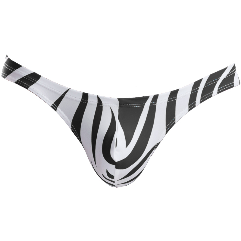 Big Bay area black and white zebra ultra low waist triangle half-bag hip T-shaped swimming trunks bikini tide male sexy tight