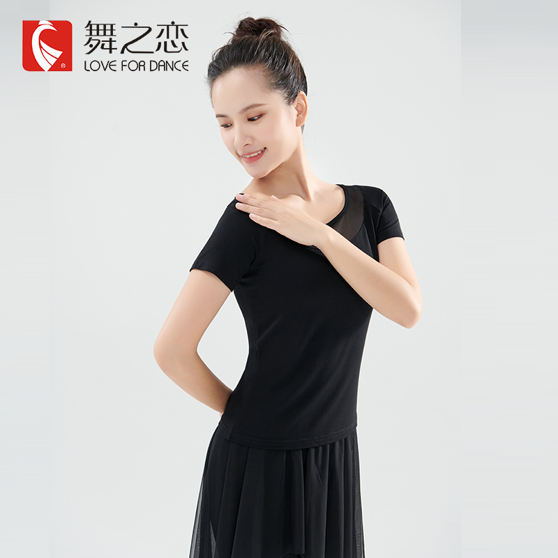 Dance Romance Modern Dance Modale Blouse Short Sleeve Body Adult Base Training Black Dance Dress Rehearsage Women