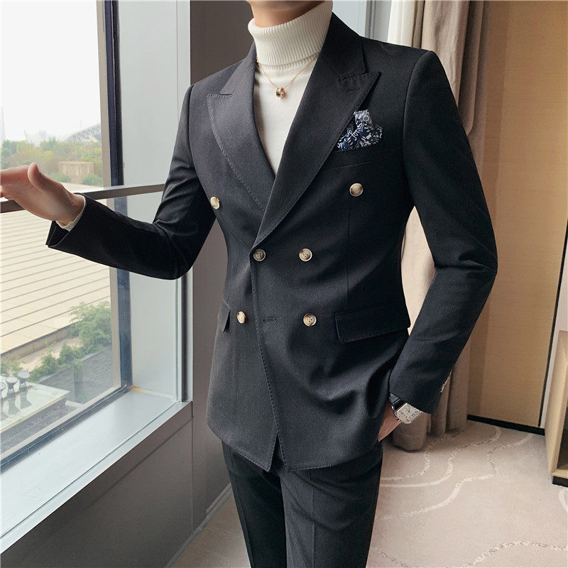 Men's suit dress wedding dress autumn new British wind Han edition repair double-row clothing two tide