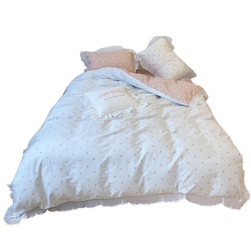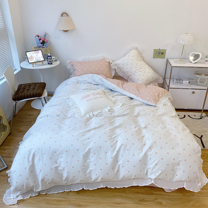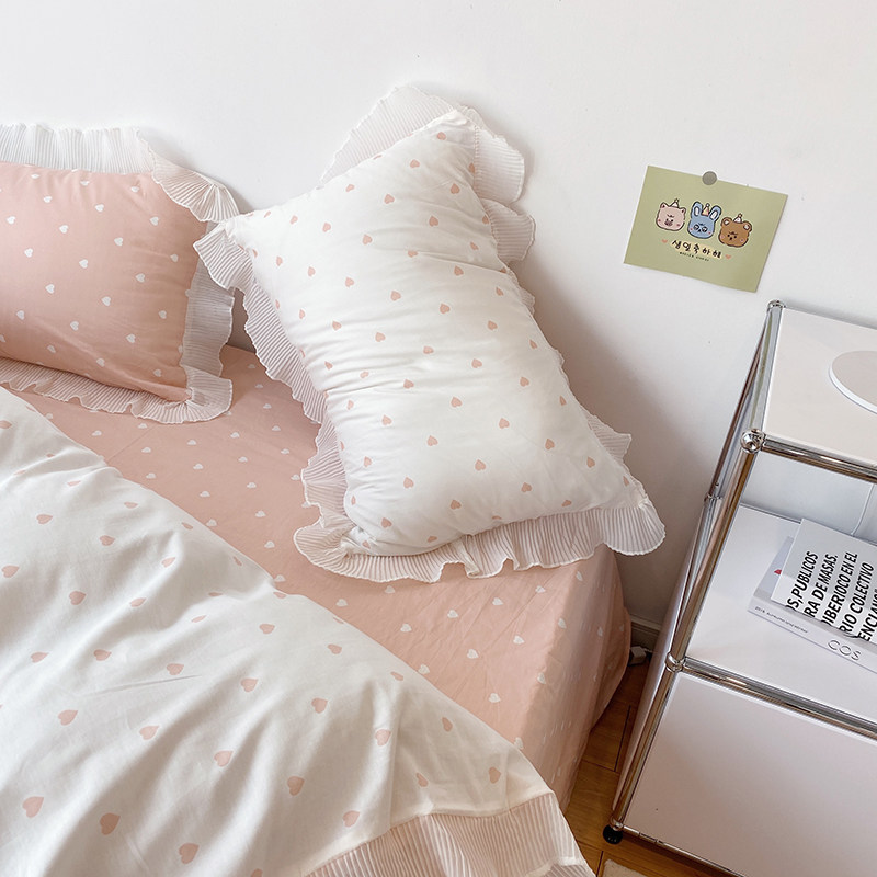 ins wind Korean princess girl heart cotton four-piece lotus leaf small love quilt cover cotton bedding