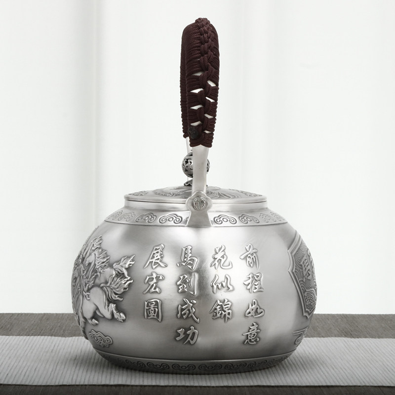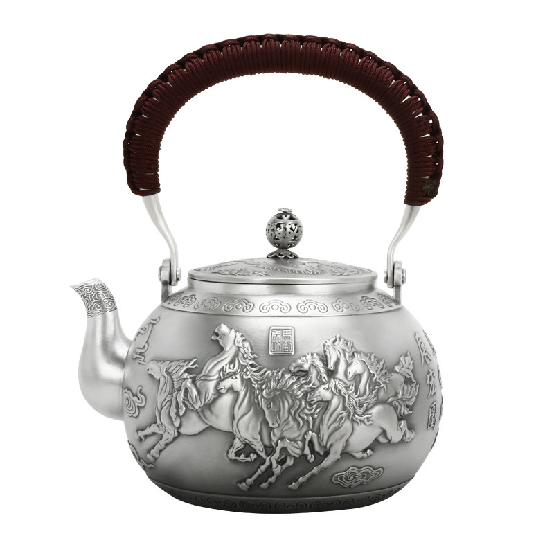 Tai'an Silver Industry Handmade Silver Pot Pure Handmade Pure Silver 999 Teapot Cooking Kettle Domestic Utilita Tea With Boiling Water Pot