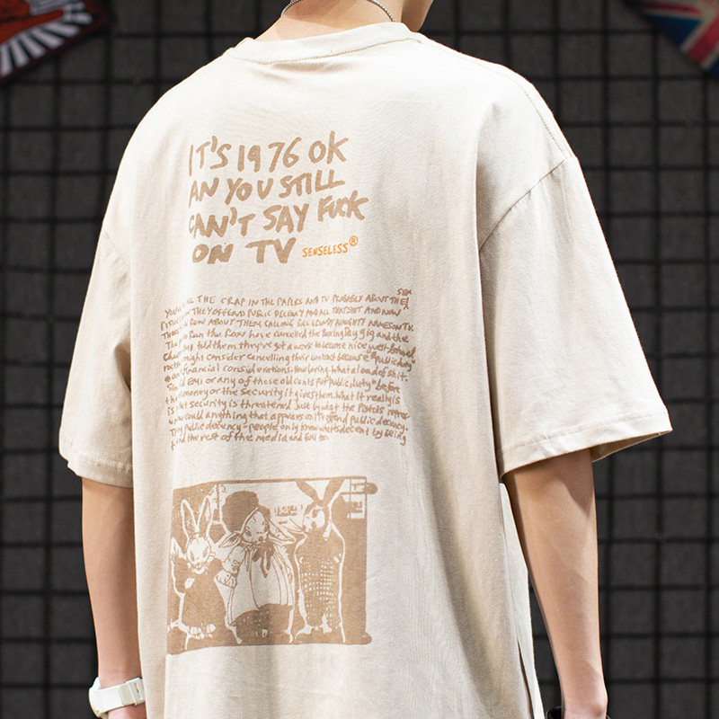 Day Faculty original Cebu Wind retro brief about 100 Cartoon Short Sleeve T-shirt Male Couple Tide Card Trendy Loose Half Sleeve T-shirt