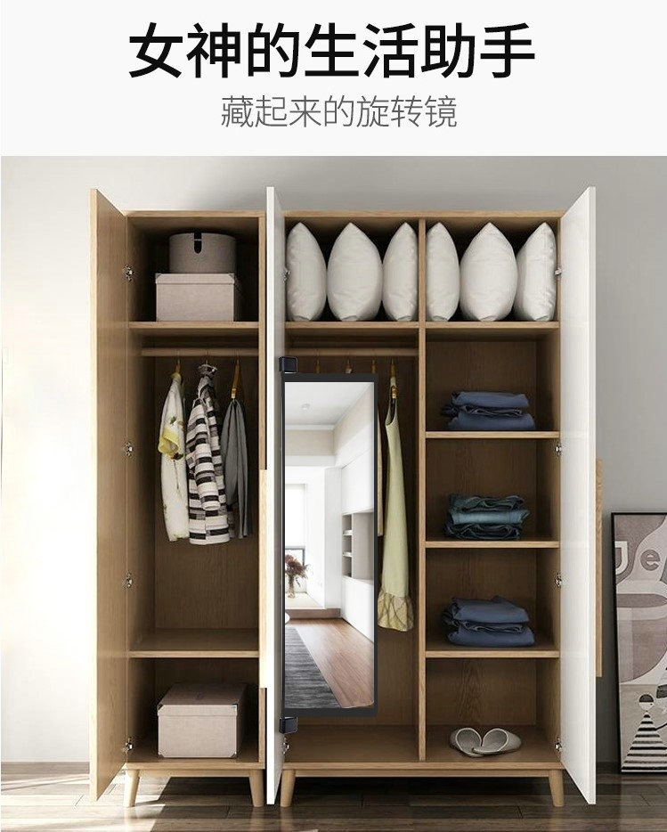 Open door full body mirror wardrobe built-in push and pull hidden whole body mirror folding rotary contact glass explosion-proof household