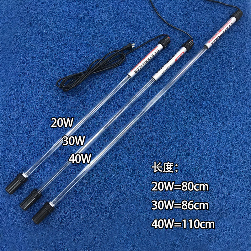 Self-immersed single tube 20W (80cm long) Self-immersed single tube 30W (86cm long) Self-immersed single tube 40W (110cm long) Self-immersed double tube 20W (40cm long) Self-immersed double tube 30W (50cm long) Self-immersed double tube 40W (62cm long)