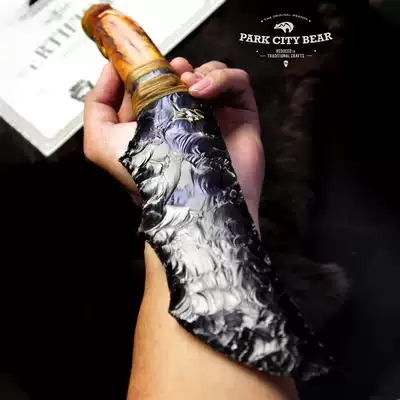 Parker Town Little Bear Pharaoh Stone Blade Natural Obsidian Hand Carved Vintage High-end Collection