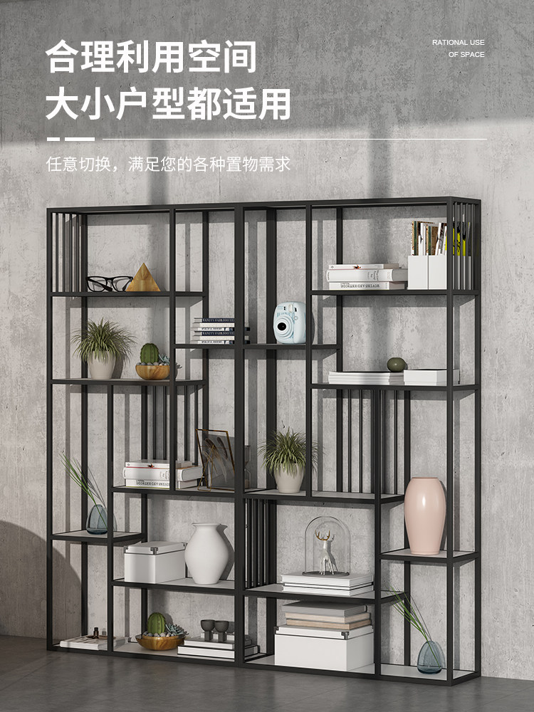 Iron partition shelf Nordic bookshelf simple creative landing light luxury screen living room modern display cabinet