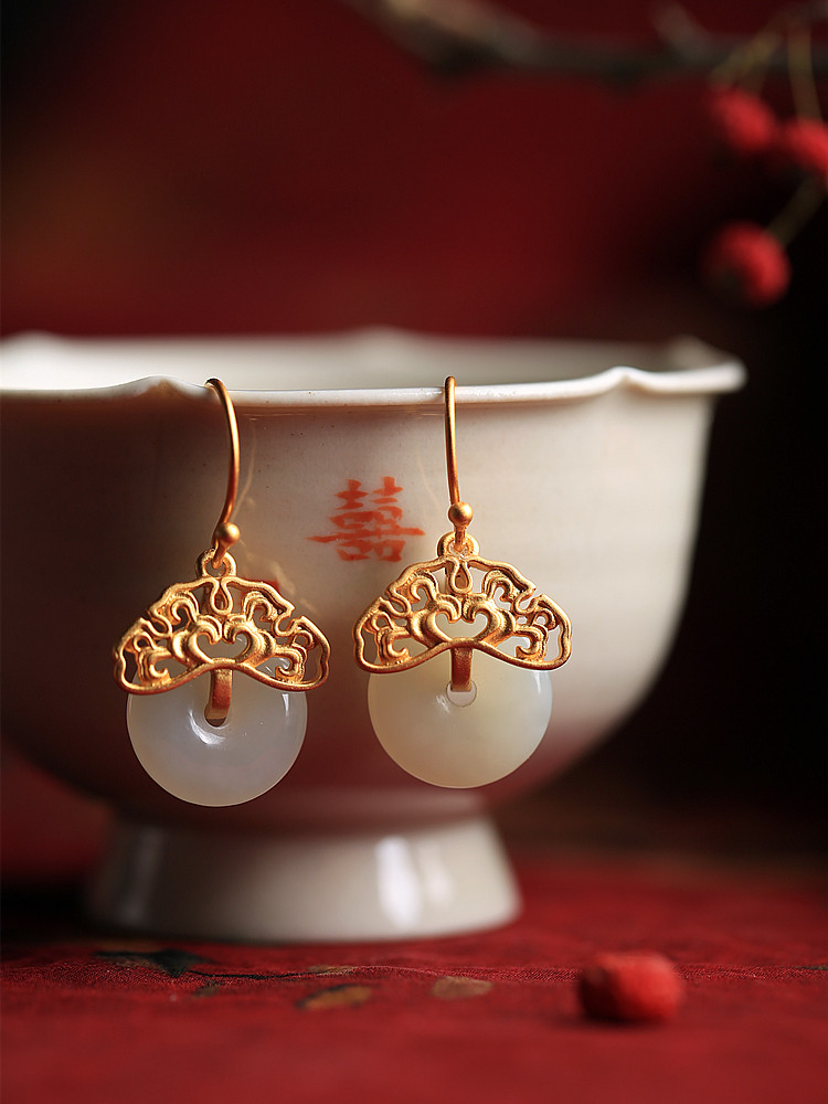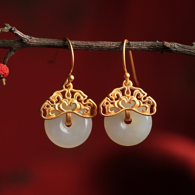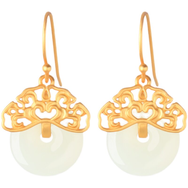 Small silver smith pure silver ancient gold and Tian Yuping button Chinese style vintage court temperament earrings