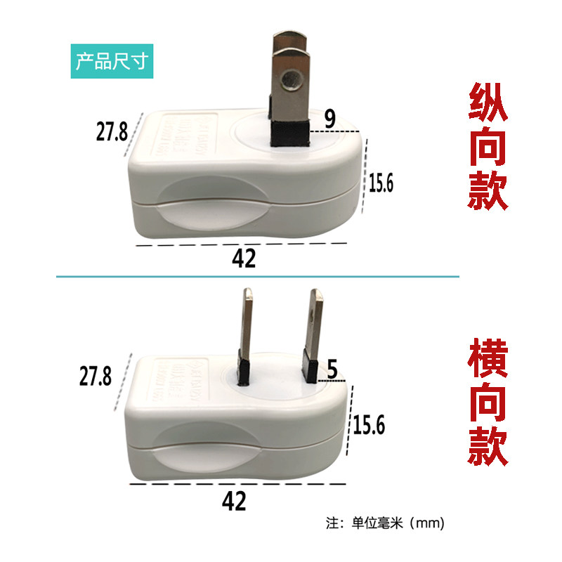 Flat wiring Japan ultra-thin head small converter plug board steering to TV socket two hole plug power supply