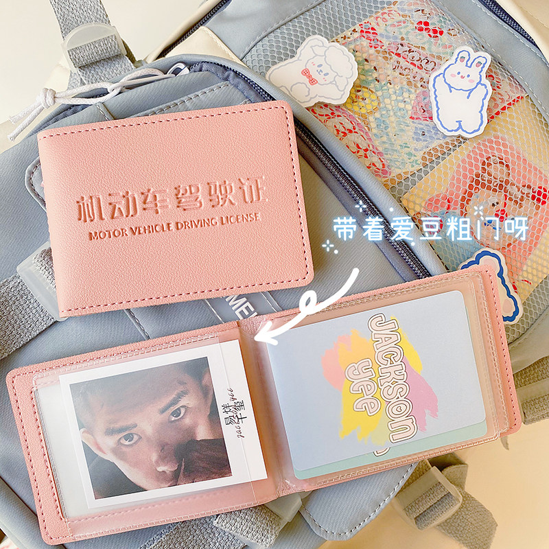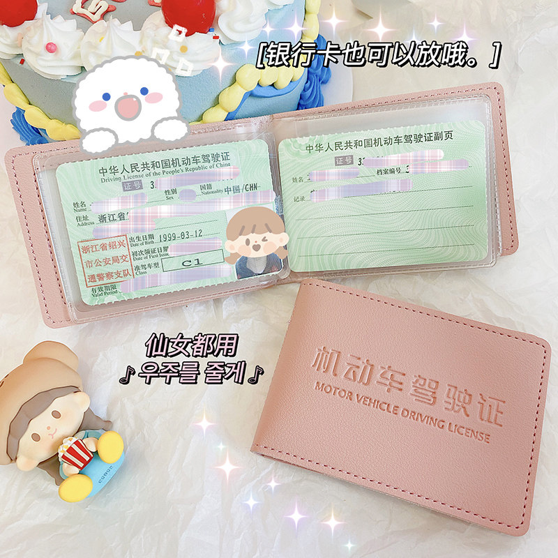 ins wind girl's heart driving license card bag leather set personality creative cute line driver's license protective license multifunction-Taobao