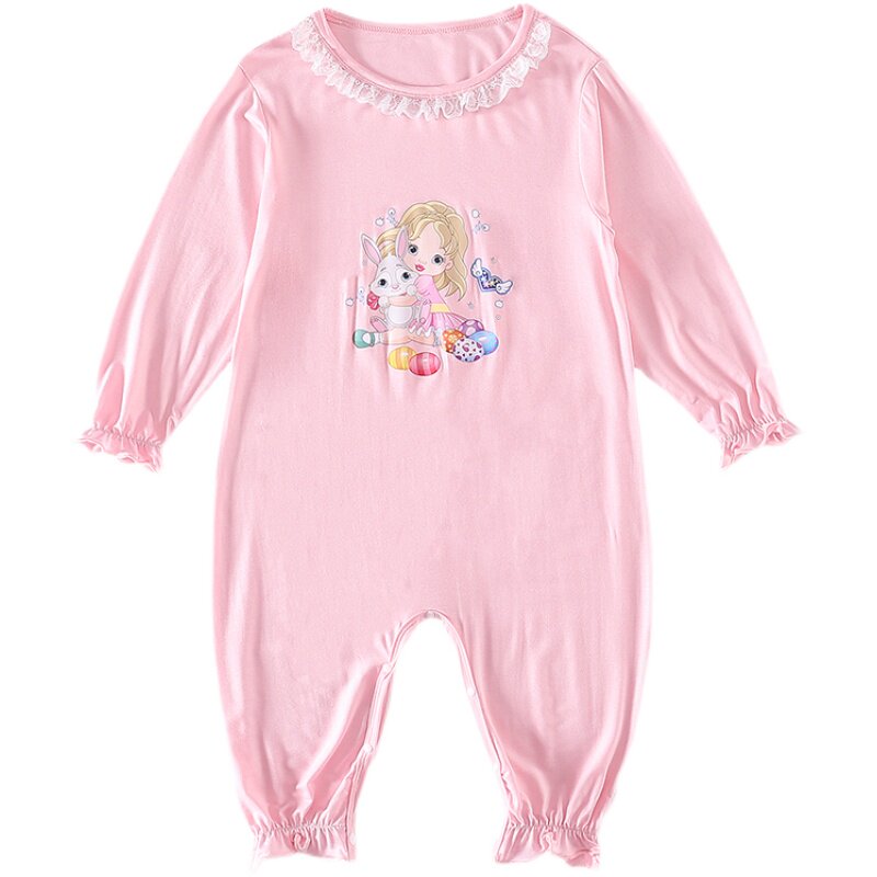 Girls' one-piece pajamas Spring and Autumn Thin Long-sleeved Children's Infant Kick Climbing Clothing Cotton Modal Baby Home Clothes