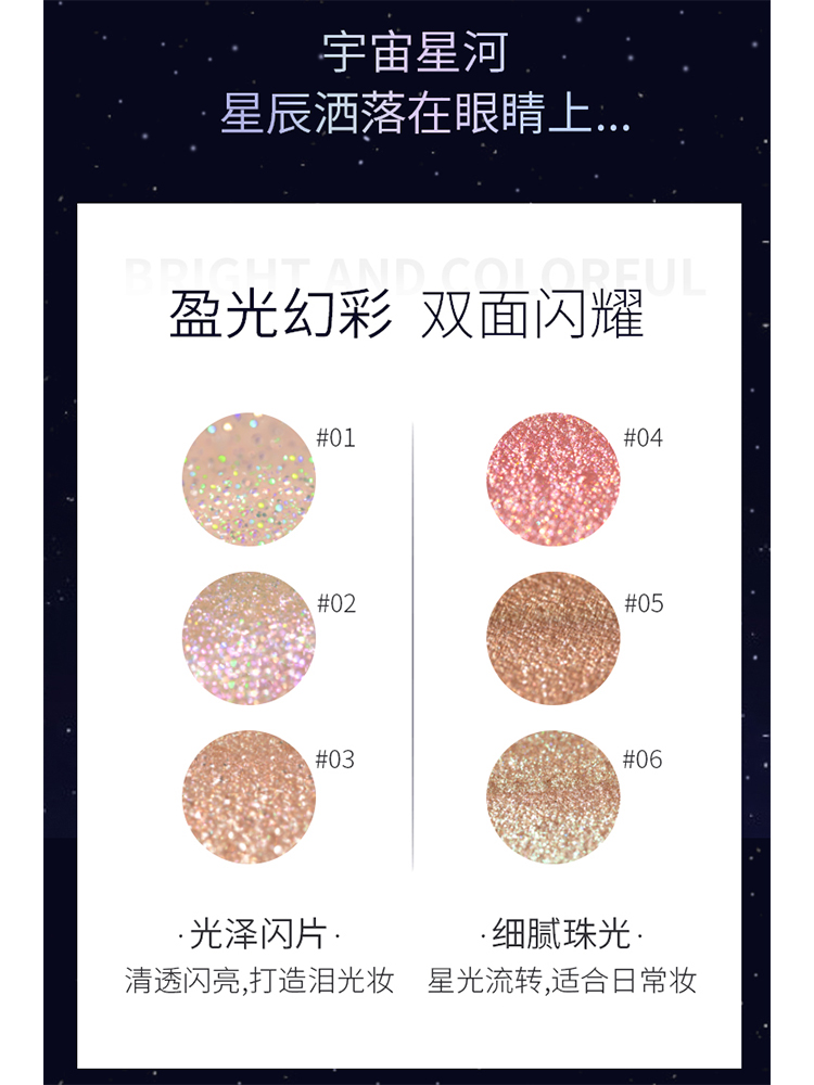 #01缤纷银河 (Silvery) #02贝壳沙滩 (Shell) #03波光粼粼 (Champagne) #04人鱼星海 (Peta.)