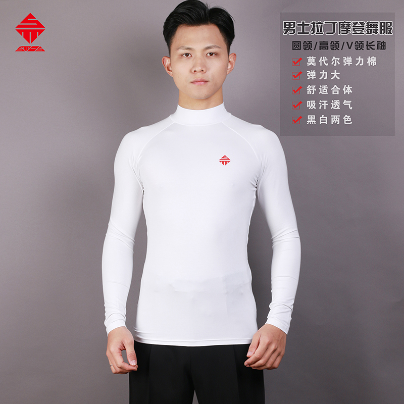 Men's dance suit jacket Morden dance long sleeve round collar high collar new Latin dance suit men's national standard dance practice