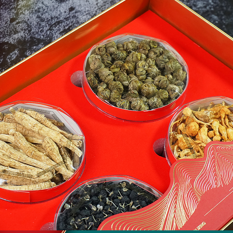 Dibao A (New Dried Orange Peel Caterpillar Fungus Flowers) Erbao B (New Dried Orange Peel Canada 5 gr Ginseng) Dibao C (Glossy Canada 7 gr Ginseng) Four Bag A (Ginseng Flower Mushrooms Dried Orange Peel Worm Grass Flowers) Four Treasure B