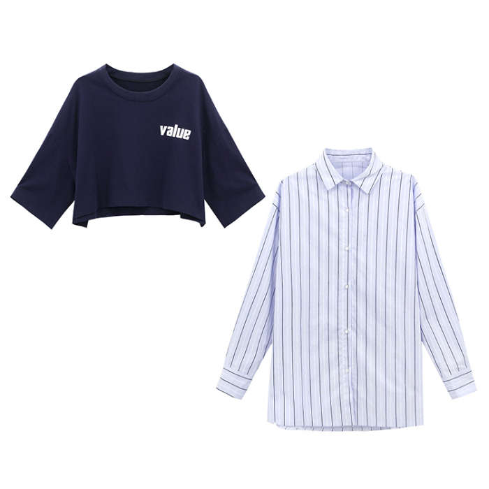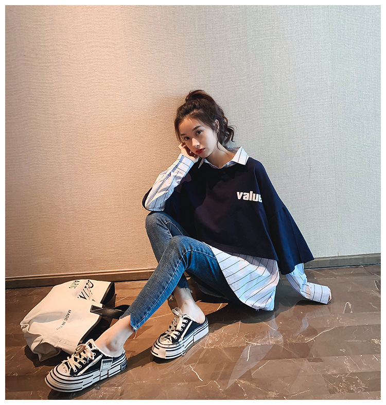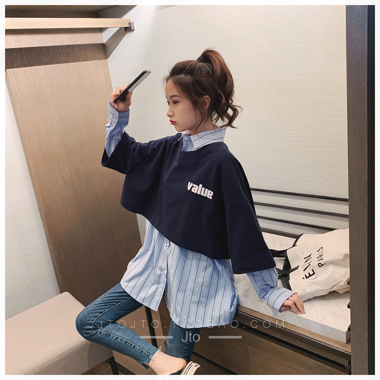 Blue shirt sweater two-piece blue shirt sweater two-piece jeans